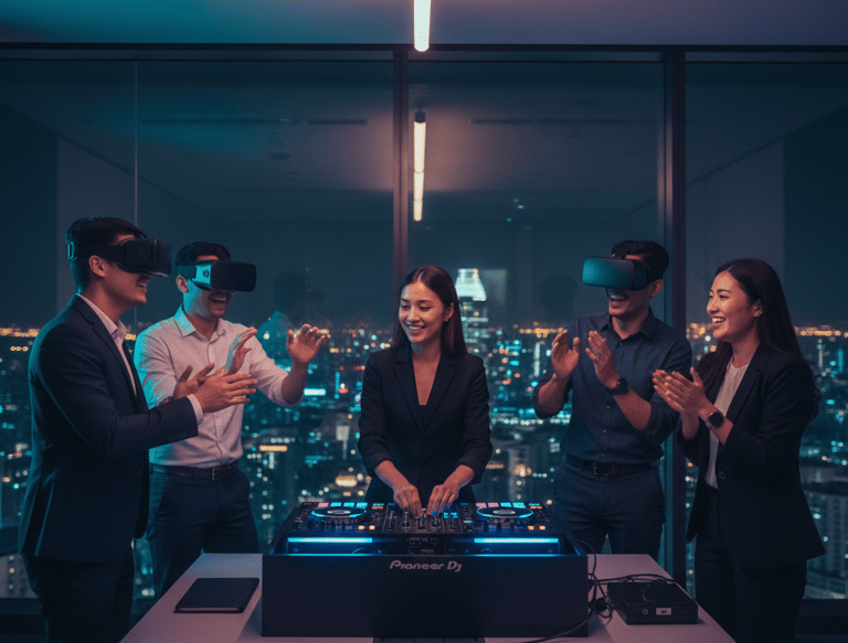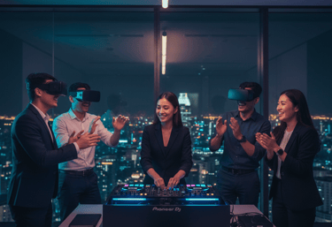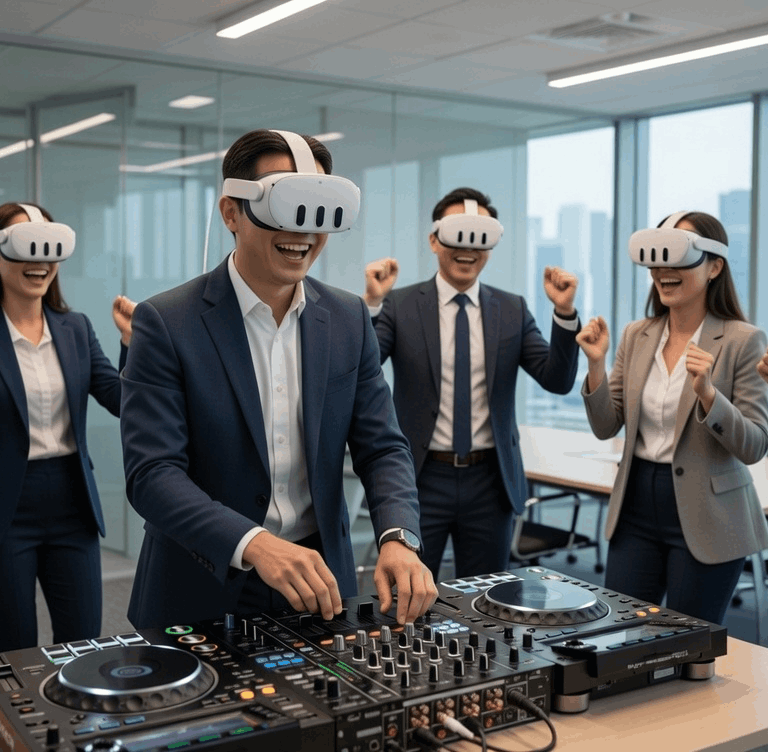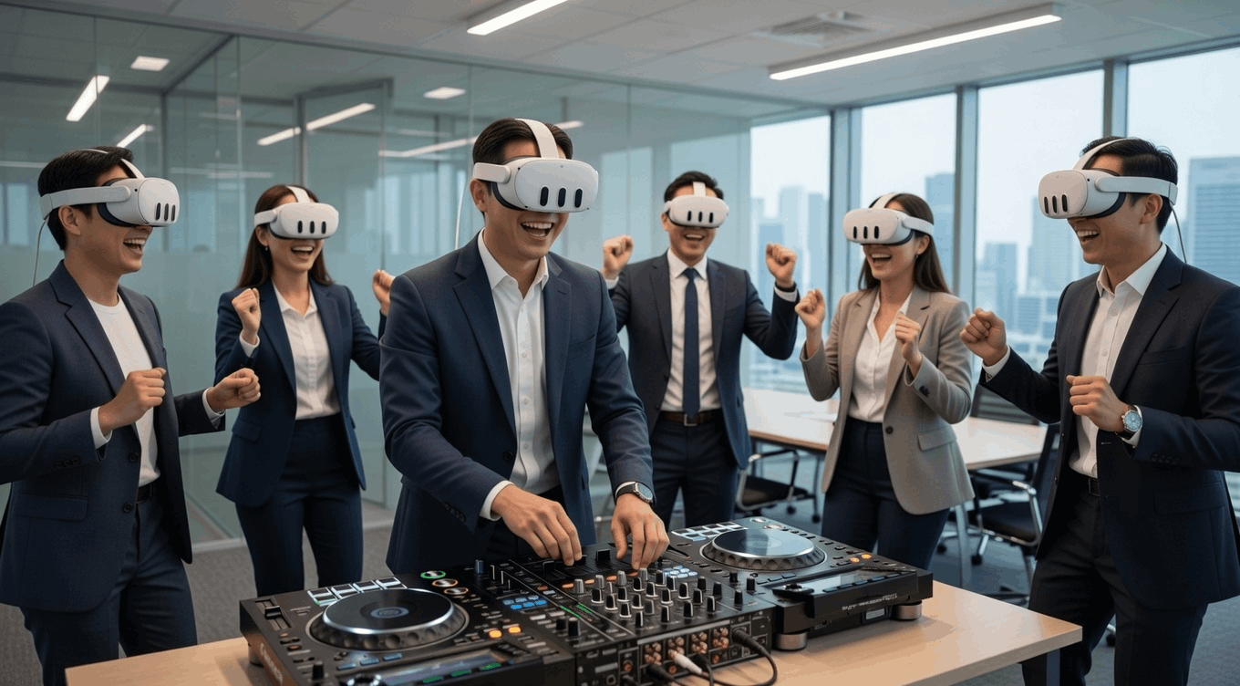 Collaborative VR DJ sessions that turn teams into co-creators. Deeper connections. Real creativity. Launching May 2026, Singapore.